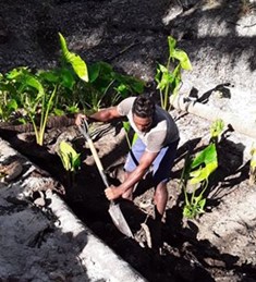 Kontitan Mikaere, 25 years of age is one of our farmer’s successful youth who is the eldest in his family and lives with his mother and young siblings. Since his father died in his young age, he became a breadwinner for his family. He loves working in his giant swamp taro pit. Being a quiet and introvert person, he finds it difficult to seek assistance from others and was not able to join KOIFAWP’s Phase one project.